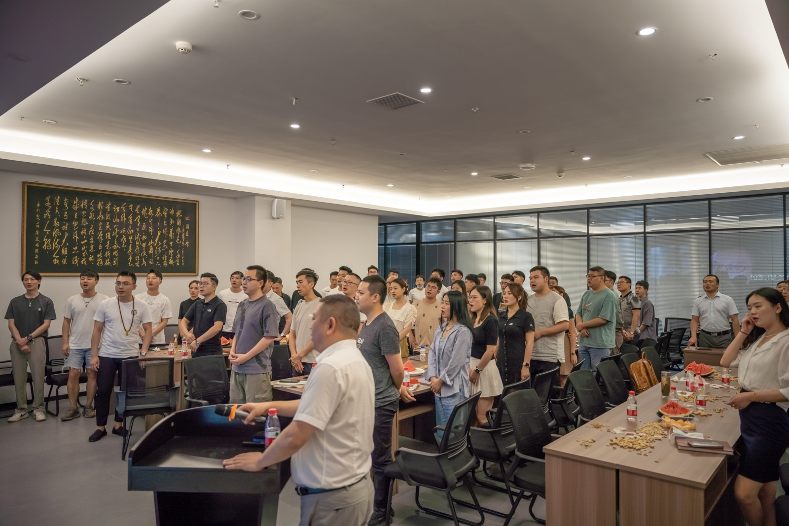 2022年6月7日在匯川雅閣裝飾旗艦店舉行了設(shè)計(jì)師分享交流大會(huì),設(shè)計(jì)部近50位設(shè)計(jì)師共同合唱匯川雅閣司歌。