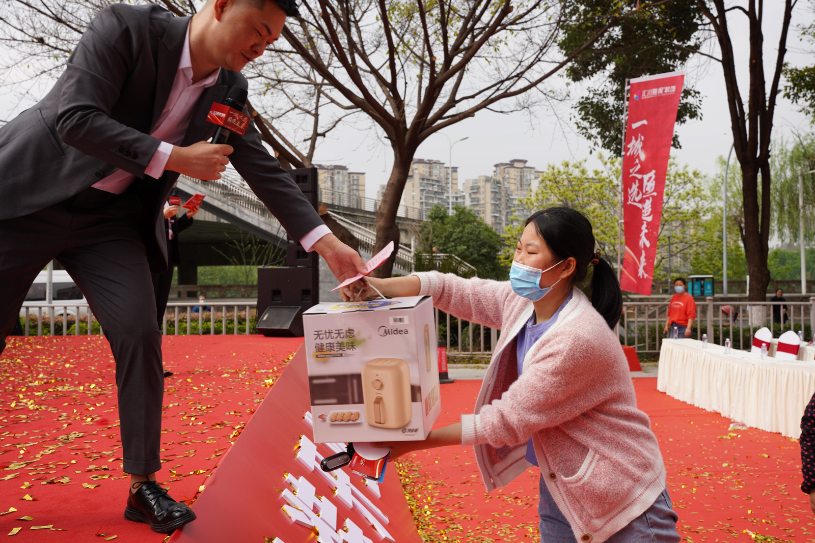 慶典上也少不鉅惠大抽獎,匯川雅閣為回饋3.15活動期間選擇并支持我們的客戶,采購大量獎品,也可能是祥獅送來的好彩頭,現(xiàn)場的客戶朋友們抽到的獎品也是驚喜連連,好運不斷,熱鬧的春日中,好運也不止步于此,未來的新房入住,匯川雅閣也會給予最優(yōu)質(zhì)的服務(wù)與品質(zhì)保障!
