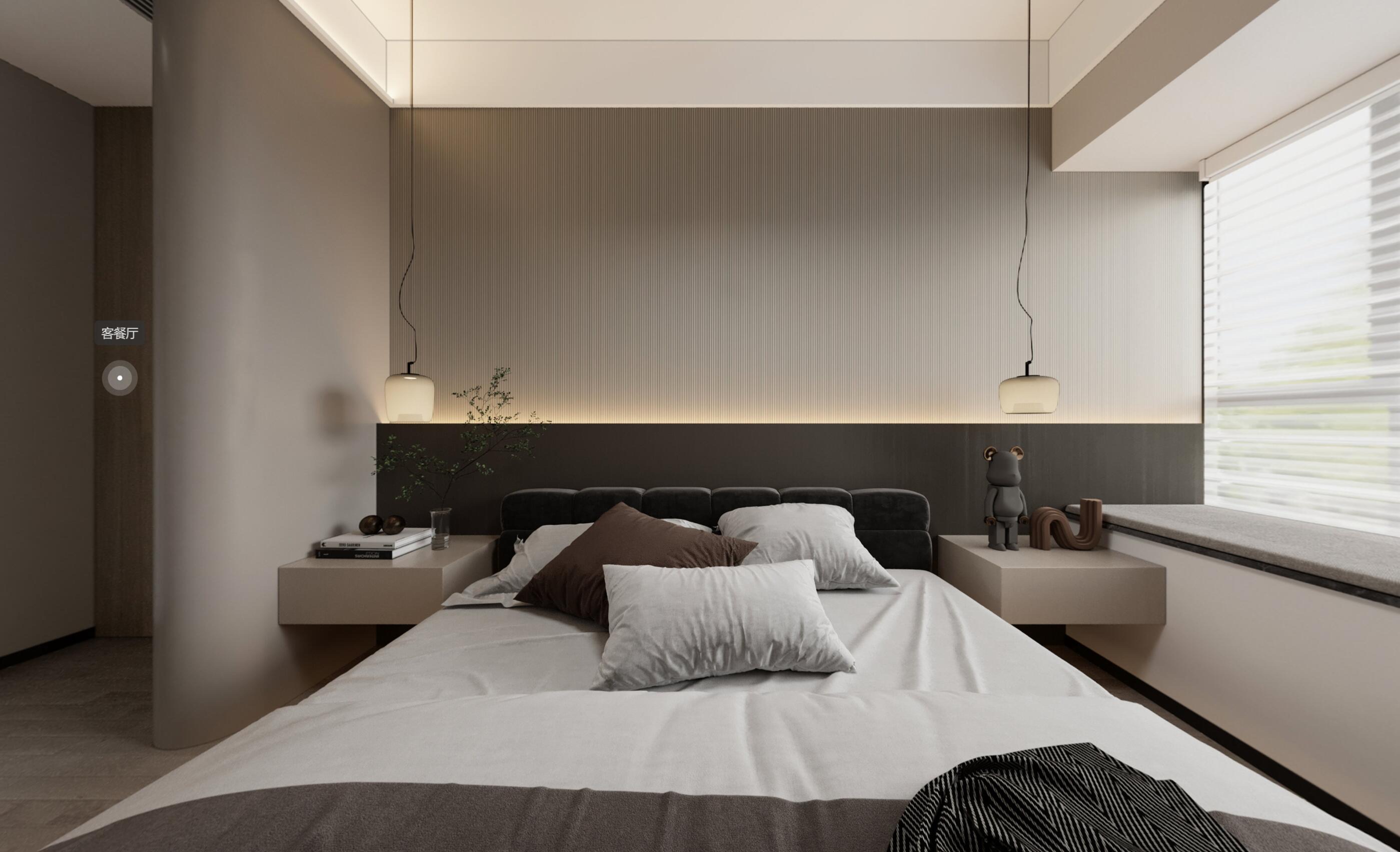 臥室則增加了黑色的現(xiàn)代床,讓入睡空間有寧?kù)o的氛圍,又可以靜觀光影的變化與流動(dòng),就想步入白色畫(huà)卷,生活如此靜謐。